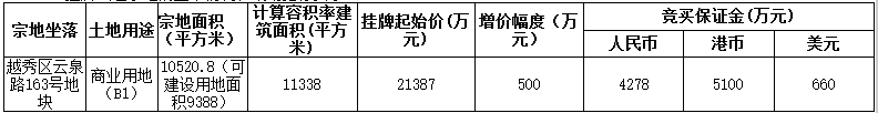 资料显示,该地块编号为穗规划资源挂出告字〔2020〕109 号。宗地面积10520.8㎡,可建设用地面积9388㎡,计容建筑面积11338㎡,起始价21387万元,竞买保证金4278万元。