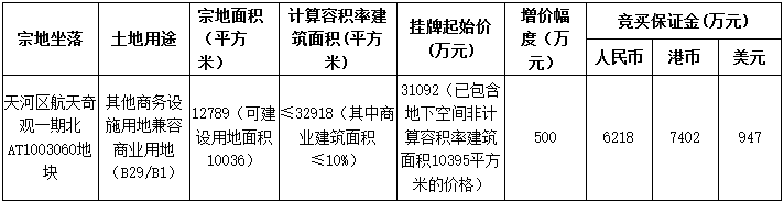 竞得人须在广州市天河区办理商事登记、税务登记和统计关系,竞得土地后注册关系、实际经营地址及统计关系10年内不迁离广州市天河区。